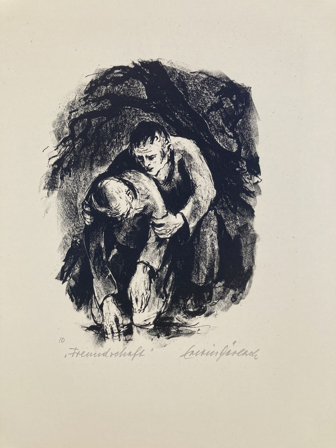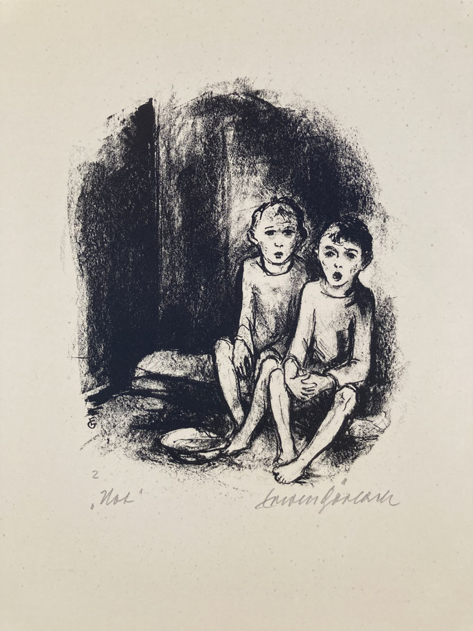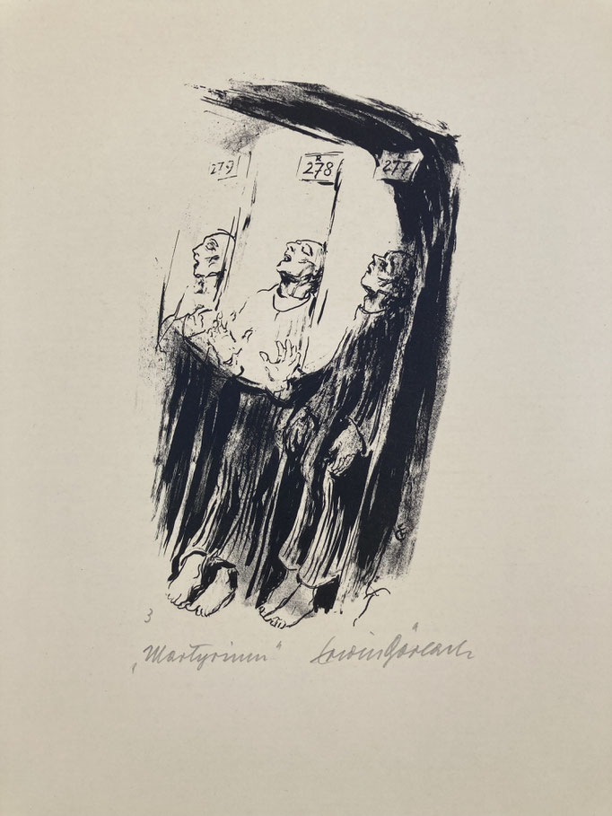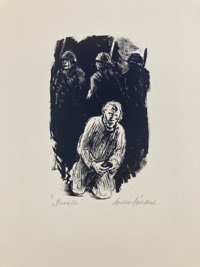 13 Lithographie zeugen von der gewaltigen Bestürzung, Fassungslosigkeit und den vielschichtigen Folgen der Traumatisierung durch die Kriegsereignisse.